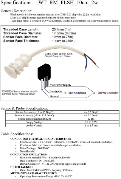 This Flush Mount 1-wire temperature sensor can be screwed directly into the drywall and painted over to become almost invisible to the occupant.